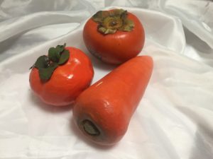 上の写真だが、ニンジンと手前の柿は娘の粘土細工!